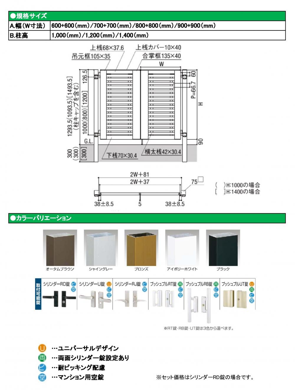 ライシス門扉10型 両開き 柱使用 画像を拡大する