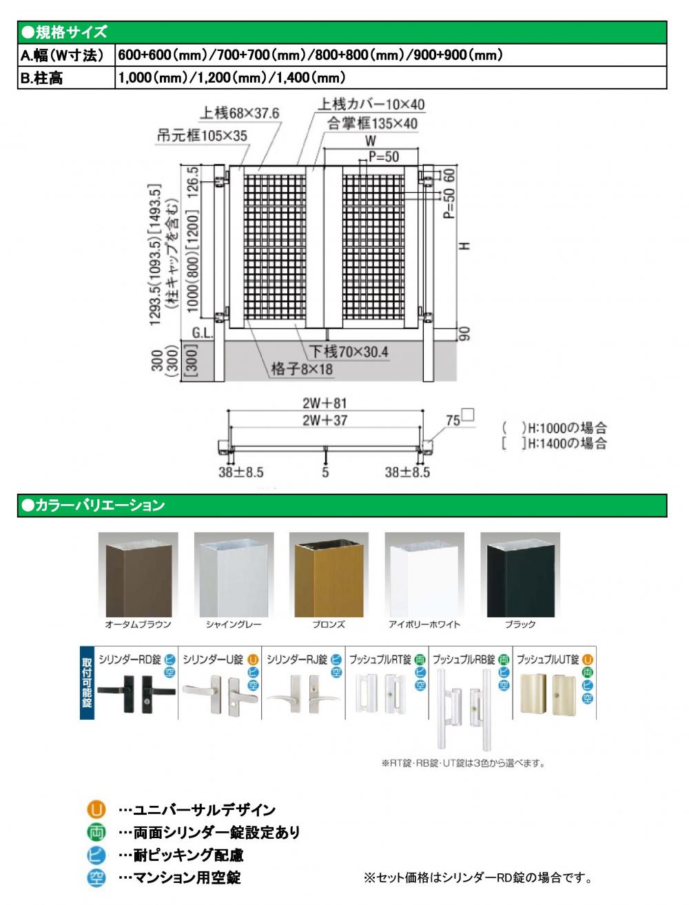 ライシス門扉7型 両開き 柱使用 画像を拡大する